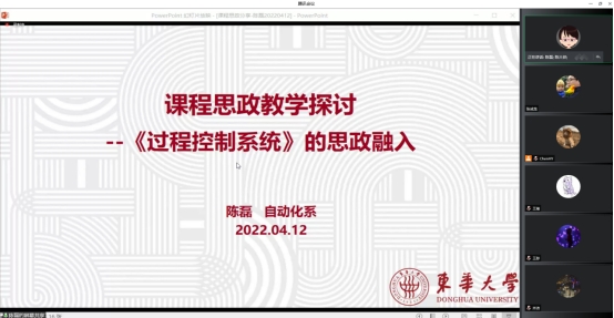 陈根龙和陈磊两位老师结合自己的教学工作先后分享了课程思政建设的心得体会。陈根龙为大家深入浅出地讲述了课程思政的具体内涵、如何在专业课程中融入思政元素,并通过典型案例讲解了思政元素应如何设计才能与专业内容紧密相连。陈磊从课程思政改革的重要性、课程思政教学案例和内容选择等方面做了经验分享。她强调,可以从知识点、哲学思想、故事、热点问题中发掘课程的思政元素,激发学生的工匠精神、攻坚克难精神和爱国精神。两位老师一致认为应通过课程思政的教与学,完成知识传授、能力培养、价值塑造的教育使命。最好的课程思政就是言传身教。随后,参会老师们纷纷交流发言,共同探讨了如何更好地在教学中融入思政元素,为课程思政建设工作建言献策,现场讨论气氛热烈。
